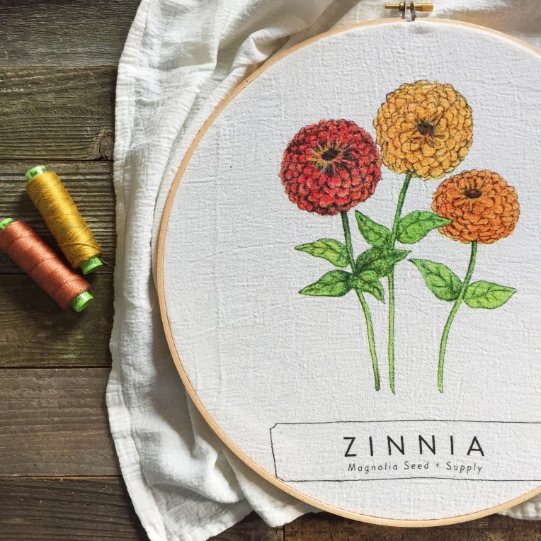 Here is an example of a project that I am going to stitch and I am going to use a stabilizer. This is a tea towel from my visit to Magnolia Market in Waco (yes, I was there and yes, it’s just as awesome as I hoped it would be!!) In this picture, the hoop is placed around the towel, but I haven’t stretched the towel enough to be able to embroider it comfortably. If I try to stretch the towel so that the fabric is taut enough to embroider, the writing becomes stretched out, the flowers become misshapen and it looses something in the process. If I stabilize it, it will allow me to stretch it in the hoop without any of that happening.