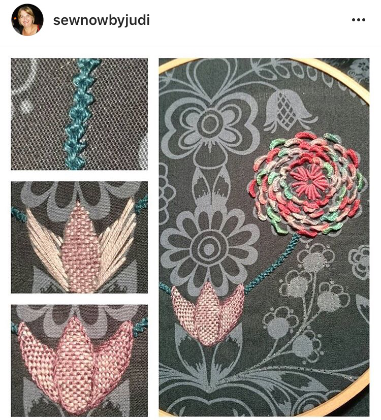 Can we just focus on the needle weaving that @sewnowbyjudi is adding to the leaves on her fabric?! What a beautiful piece this is!