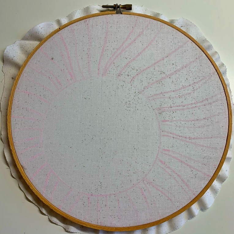 It’s time to draw your sun! You can either freehand this or find something circle you trace a sun shape into your fabric. This is where you will want to use your water soluble pen/pencil/chalk. Your lines don’t need to be very dark…just dark enough to give you some guidelines for painting.