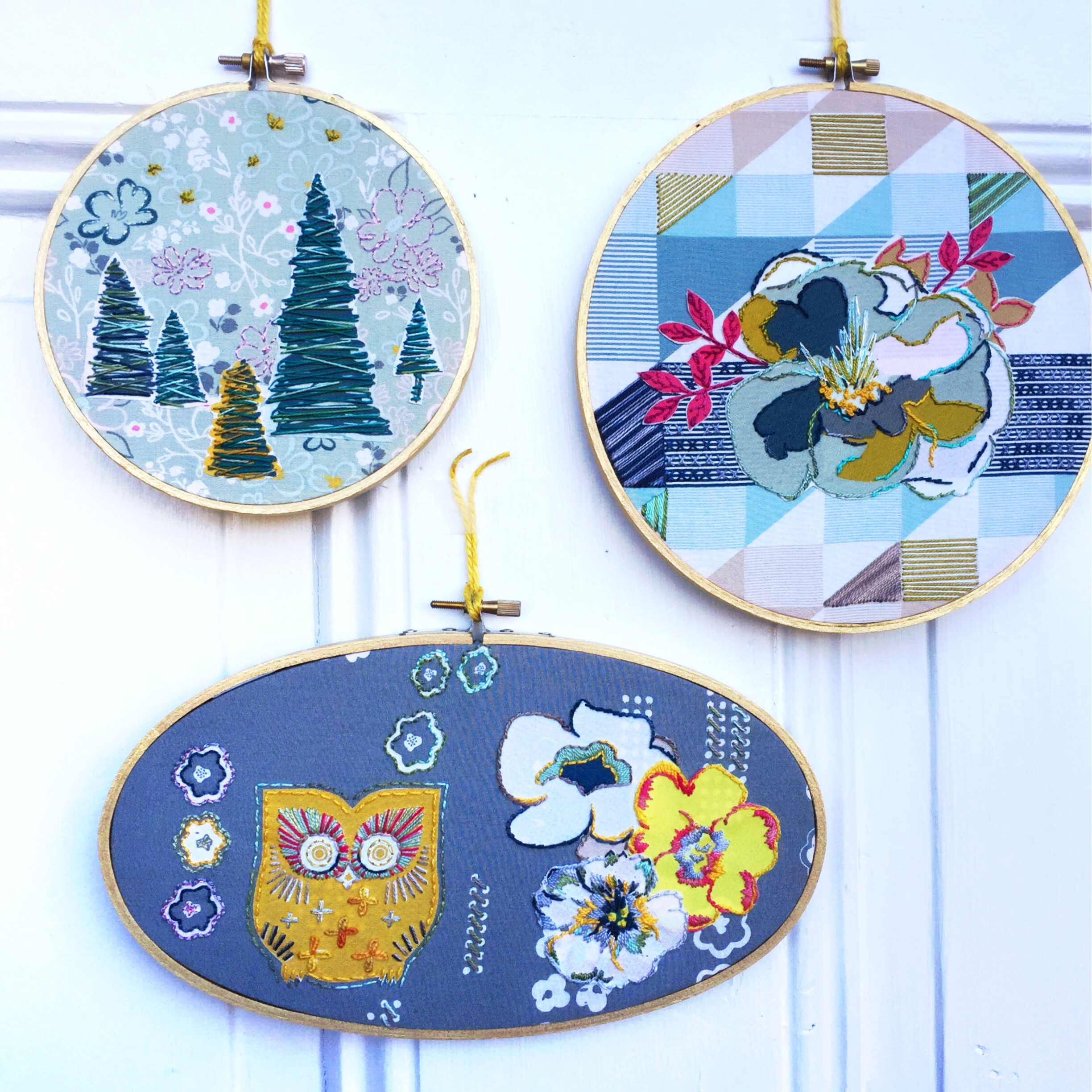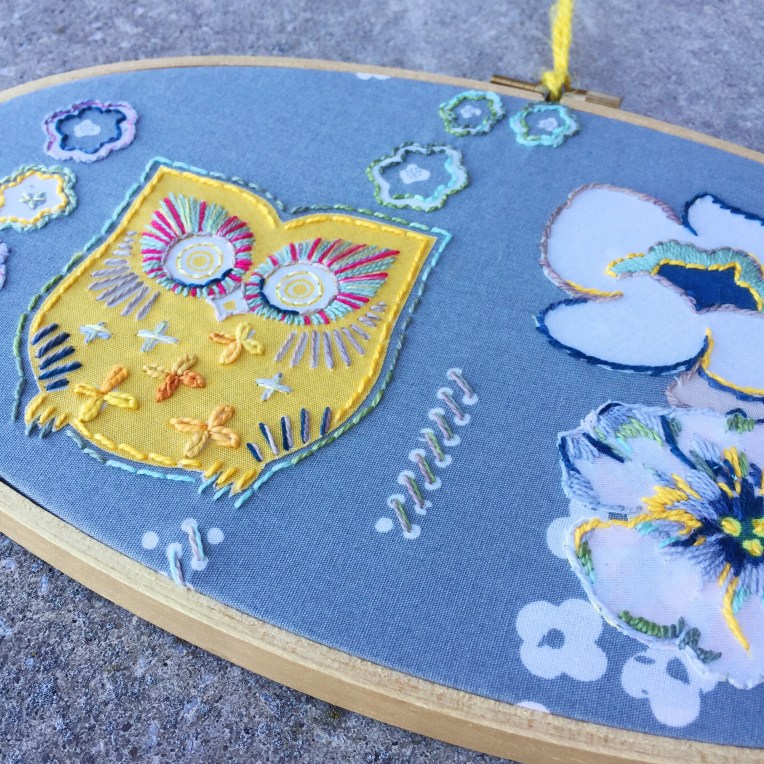 So then on to the bonded fabric blade. I wanted to cut several flowers for this collage hoop: