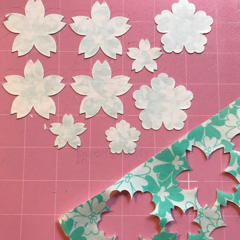 Using the bonded fabric blade, I ironed the Heat n Bond to the fabric and then placed the fabric face down (heat n bond side up) and cut my flowers.