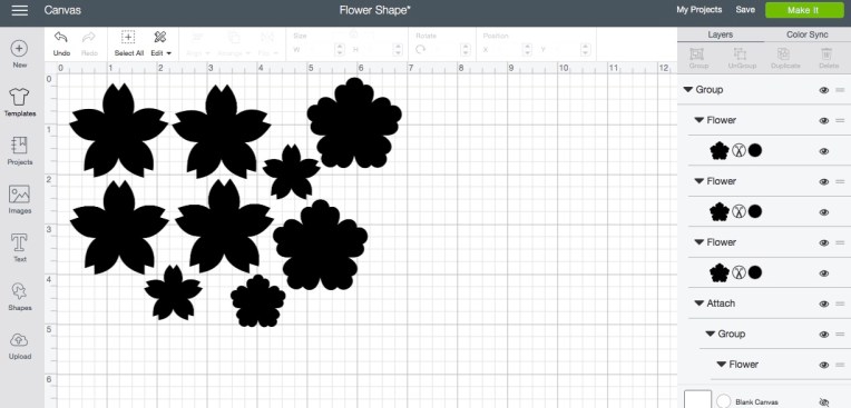 Normally, I sketch out what I want to cut on Heat n Bond and then iron it to the fabric and cut from there. So this time I wanted to see if it would be any quicker to set-up a bunch of flower shapes in Design Space and then cut them all at once.