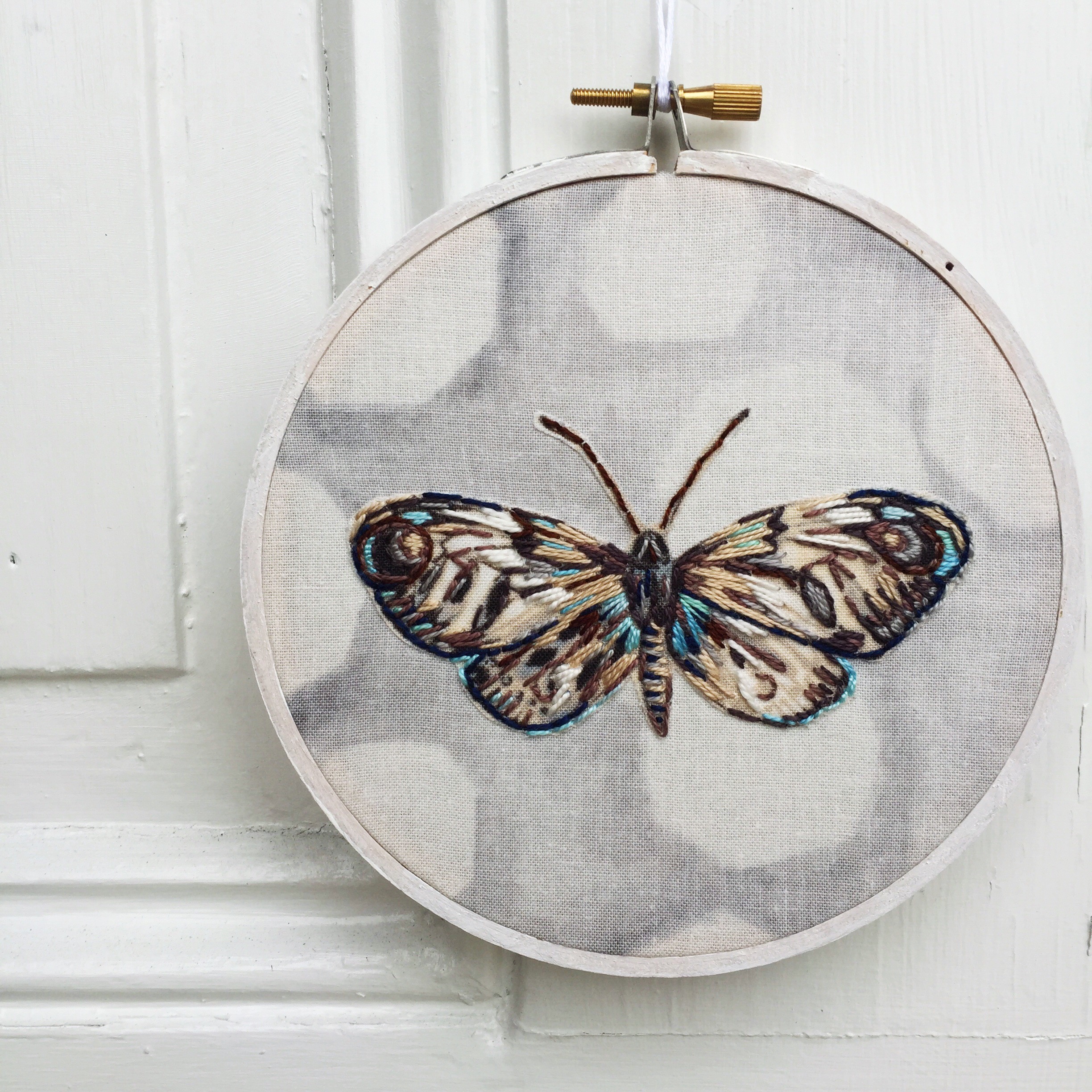 A beautiful moth with some added blue. The blue goes so well with the grey and copper in this collection.