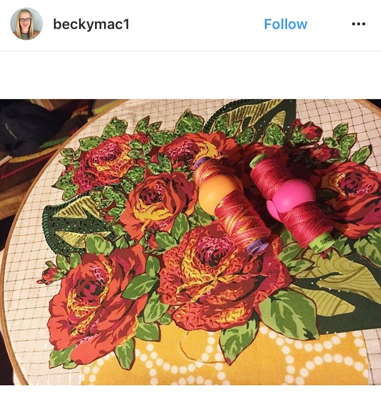 And if all of this seems completely overwhelming and you just want to stitch a pattern, look how completely different this project can be if it is simply embroidered using the Tula Pink color guides and her pattern from the book!