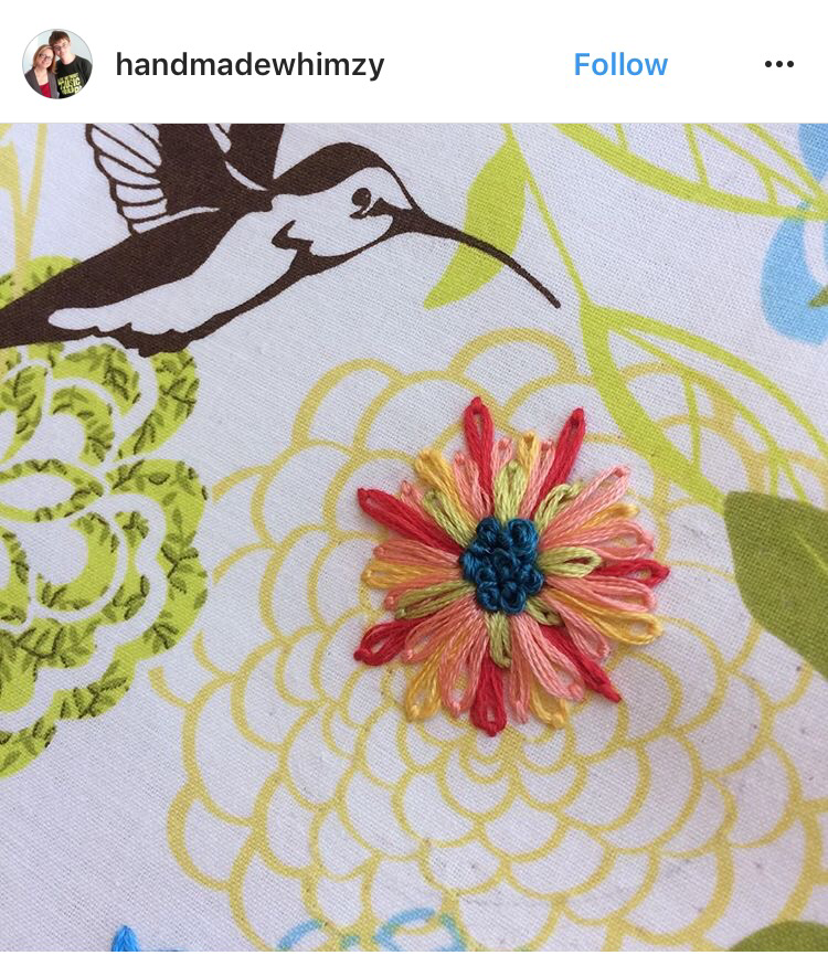 This yarn is really fun to embroider with….I mean, check out those colors! You can find these “Unicorn Tails” at Mad Tosh.
