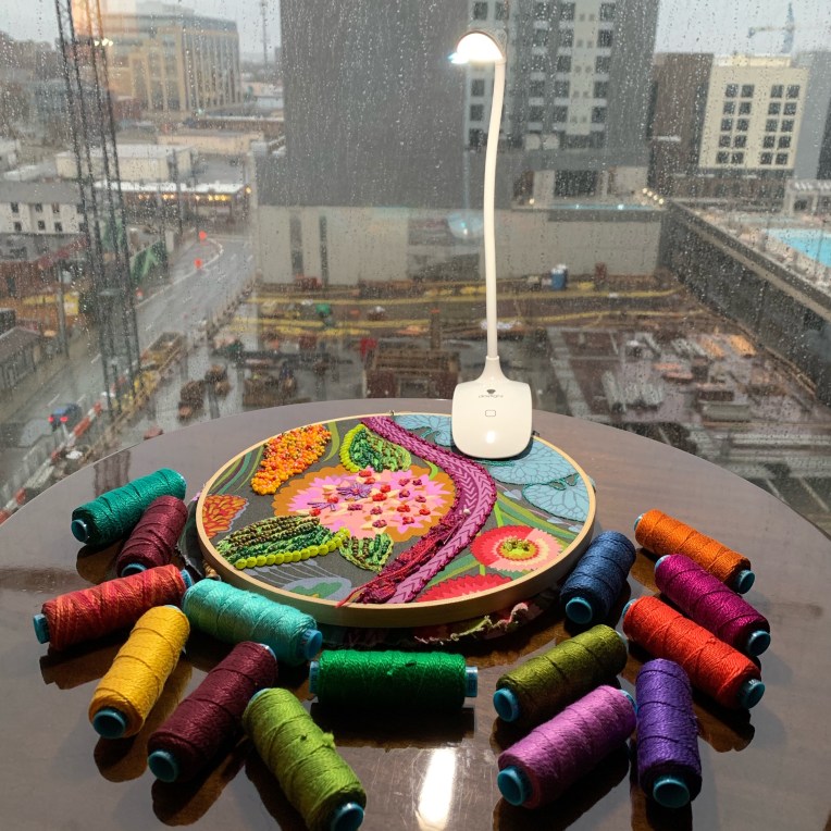 One of my favorite QuiltCon purchases was this Daylight Company clip-on lamp. Oh, and lots and lots of Eleganza thread!