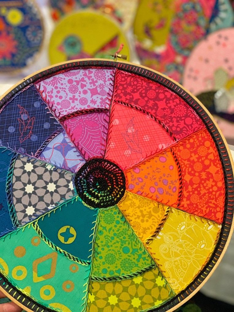 Friday was an all-day class of Collage Embroidery. This is one of my favorite classes to teach because at the end of the day, each student has created something completely one-of-a-kind! I love to see each individual’s creativity come through in their appliquéd design!
