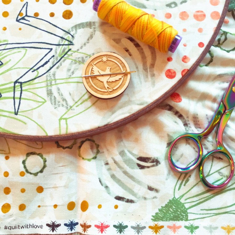 This thread is beautiful. It is called “Fly a Kite” and is a mix of buttercup, spearmint, ice and bluejay blue colors and is from a Limited Edition color pack (which, P.S. it looks like is still available!) from Sue Spargo. I typically do not use much size 3, the largest perle cotton size, but I don’t know….i’m really liking the thickness of this size to stitch with.